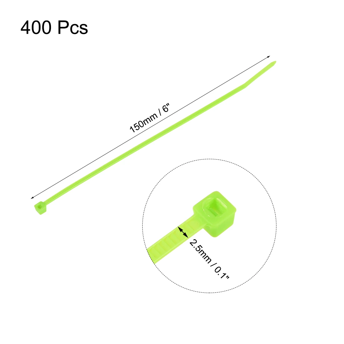 Uxcell 400 шт., нейлоновые галстуки на молнии 150 мм x 2,5 мм, самофиксирующиеся флуоресцентные и зеленые, одноразовые, фиксирующие, гибкие