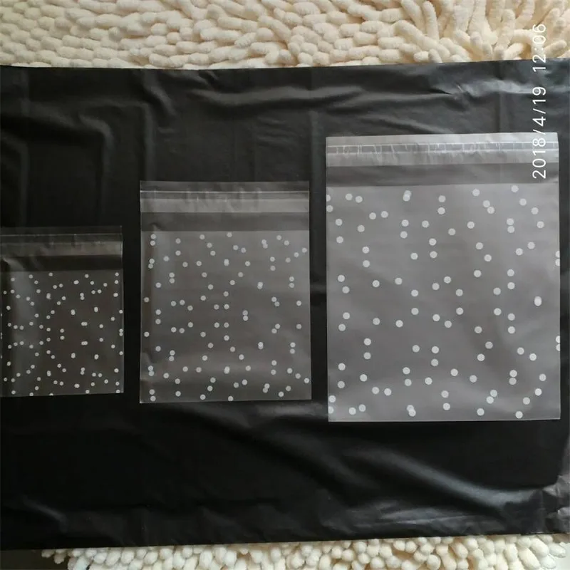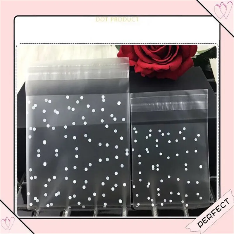 100 шт., пластиковые прозрачные самоклеящиеся пакеты в горошек