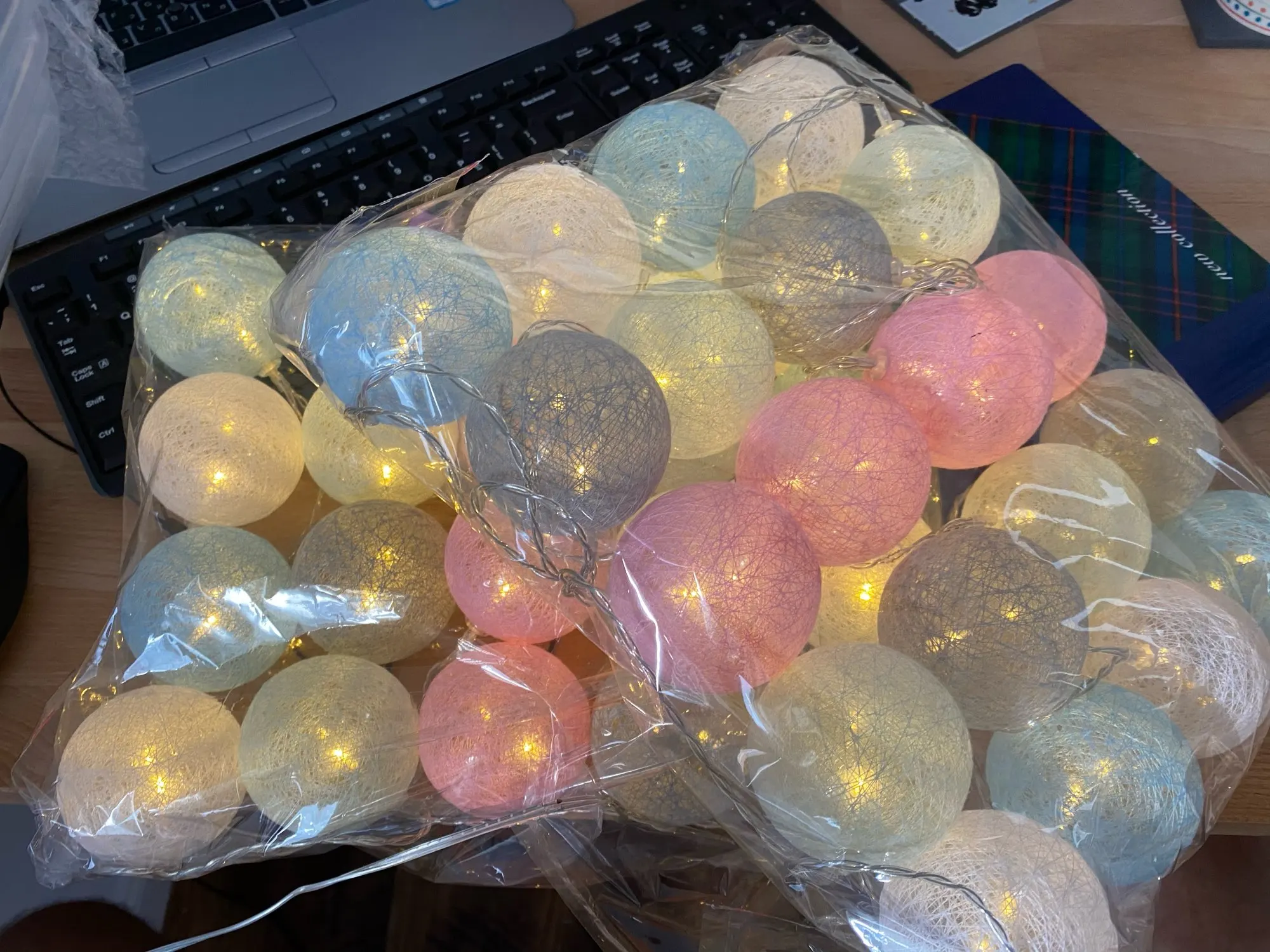 Прибыл в течение 20 дней, хорошо упакован, в идеальном состоянии. Шарики красивые, с мягким светом и хорошей отделкой.