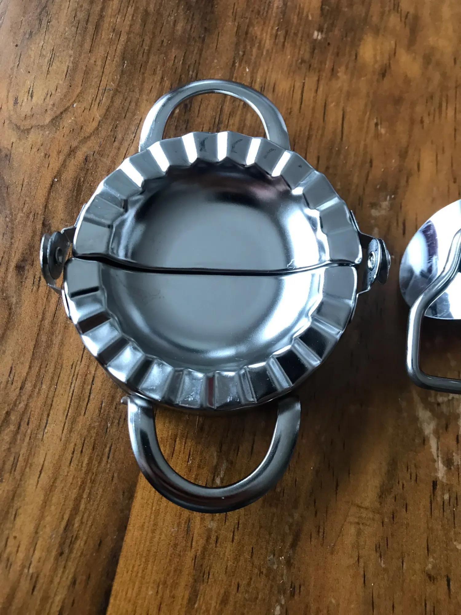 Круглый резак очень хороший, но устройство для пельменей подвержено опасности из-за острых краев. Я вырезал палец, когда открываю упаковку. Края должны быть закруглены и отшлифованы, поэтому они не будут срезаны. Я тоже купил пластиковый. Таким образом, я использую пластиковую, потому что я не хочу терять свою кровь.