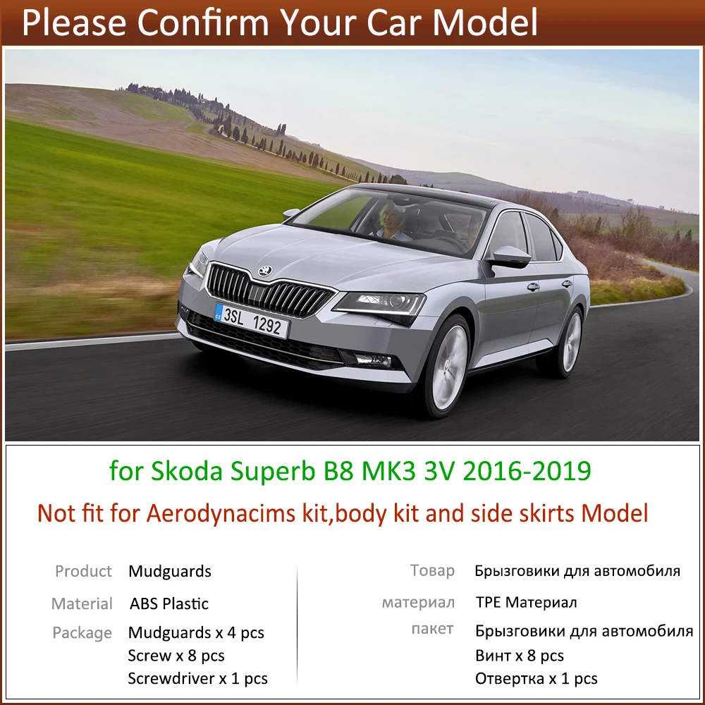 4 шт. передние и задние брызговики для Skoda Superb 3 B8 MK3 3V 2016 2017 2018 2019 Брызговики для облицовки Брызговики аксессуары