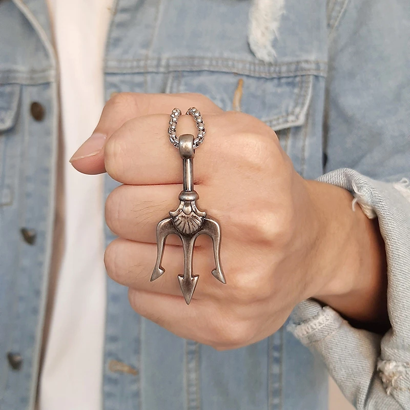 Винтажный кулон Нептун Посейдон из нержавеющей стали, амулет Древней Греции, ожерелье, мужское ювелирное изделие, подарок матросу