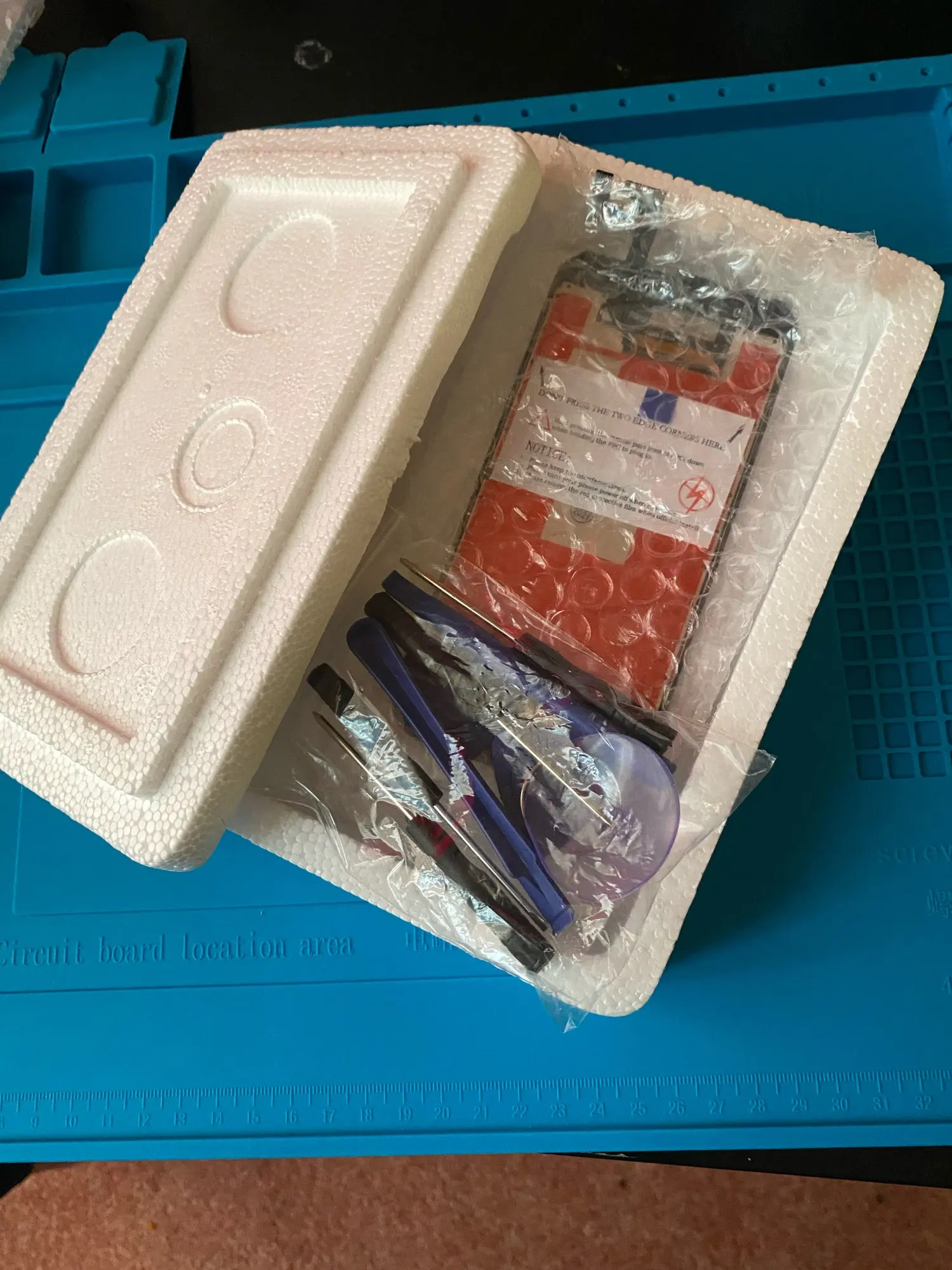 Вместе с дисплеем был чехол и защитная плёнка. Все легко установилось и работает