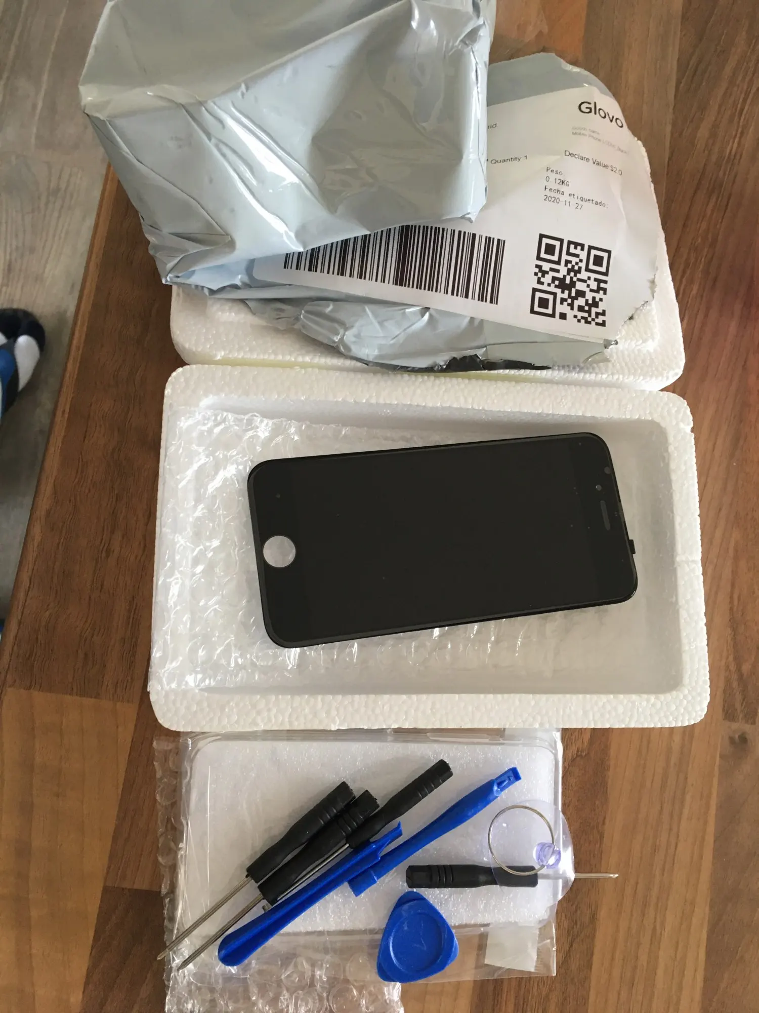 Упакован отлично.Большой комплект инструментов, стекло, бампер силиконовый. Шёл примерно месяц до Московской области. Установил. Всё работает. Надеюсь надолго. Продавца рекомендую.