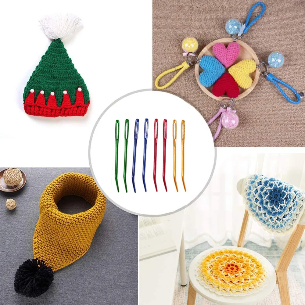8 шт., с изогнутым кончиком иглы для гобеленов, для вязания крючком, большие тупые иглы, набор швейных игл для вязания крючком
