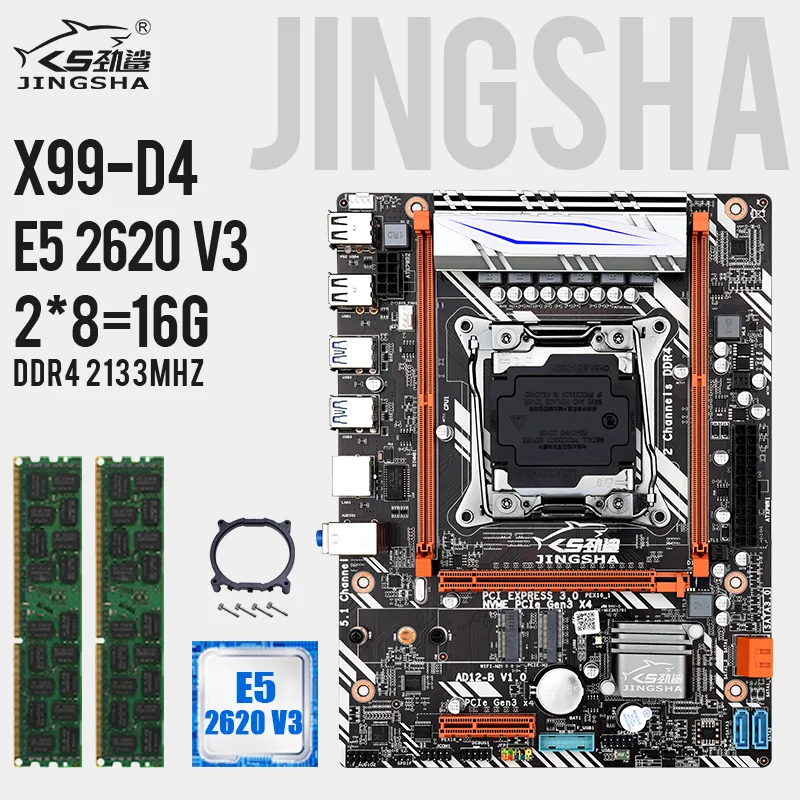 Посылка содержит: X99 D4 материнская плата + E5 2620V 3 CPU + 2шт 8 Гб 2133 МГц память ECC REG