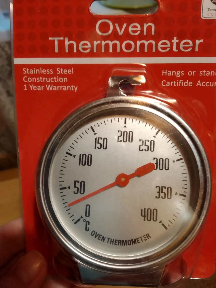 Доставка меньше месяца. Градусник пока тестируется, температурный режим показывает вполне точно. То, что в отзывах пишут, о невозможности опустить стрелку к "0", так это логично, градусник показывает окружающую его температуру, а духовой шкаф обычно находится в помещении при комнатной температуре, а не 0° Довольно крупный по размеру, хорошо видны градусы с далека .