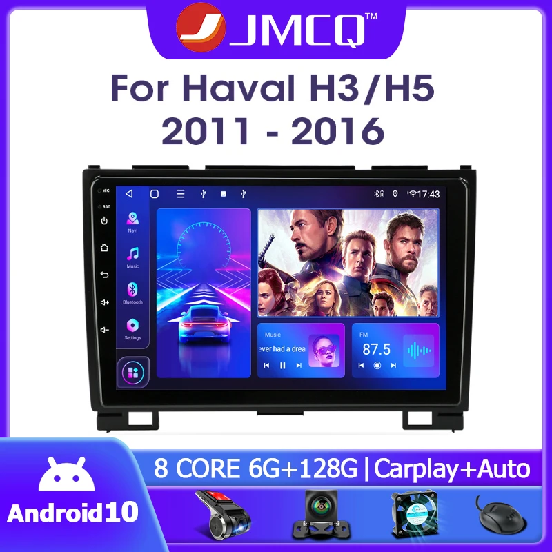 Автомобильная Мультимедийная система JMCQ, 2DIN, 9 дюймов, 4G, Carplay, DSP, Android 10,0, GPS-навигация, для Great Wall Haver H5 H3 2011-2016