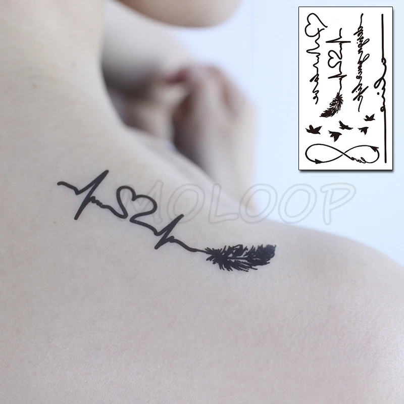 ЭКГ Rocooart, черная водостойкая временная татуировка, наклейка с з...