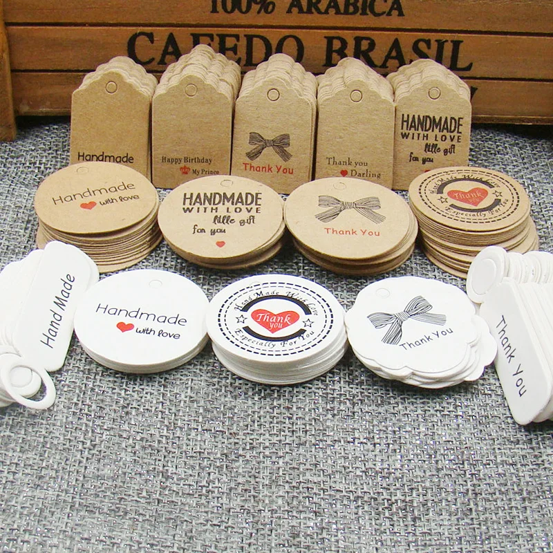 100 шт. различные милые подарочные этикетки из крафт-бумагибелой бу...