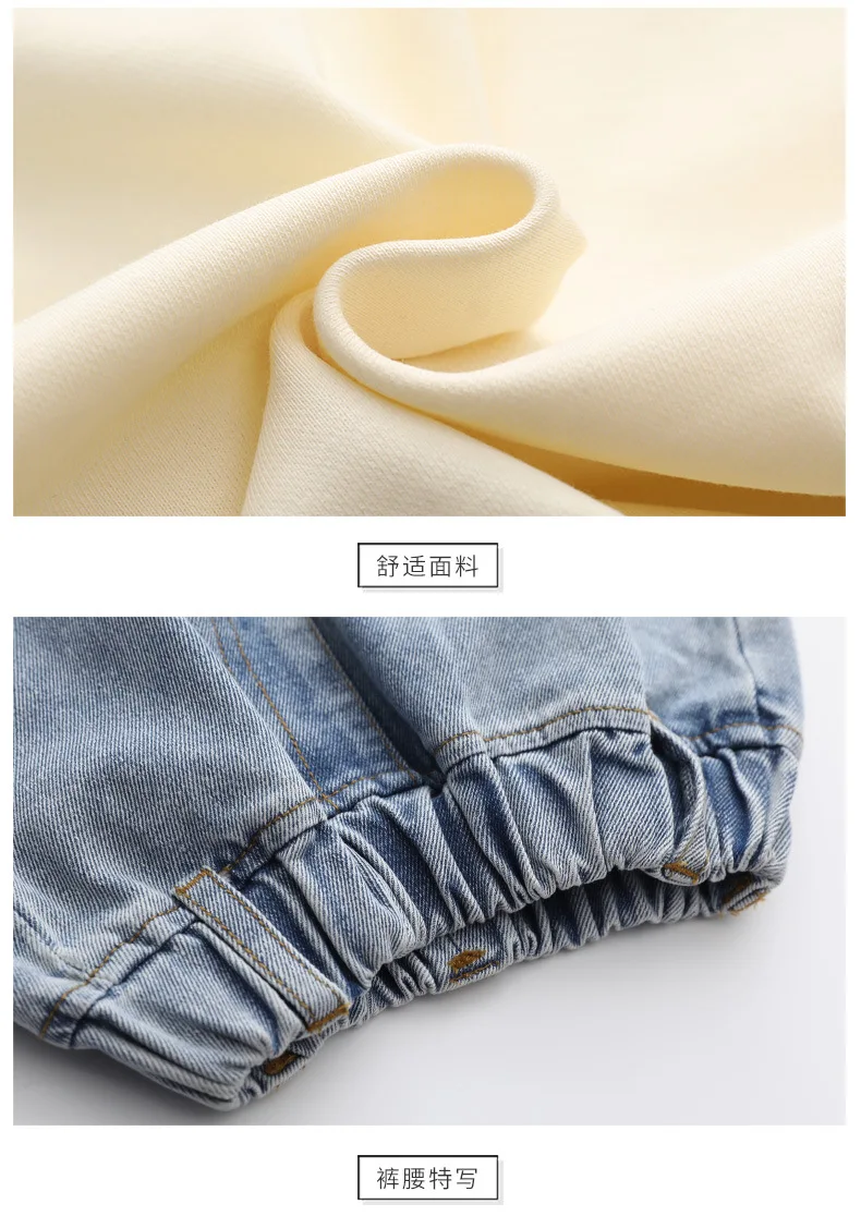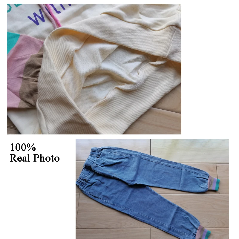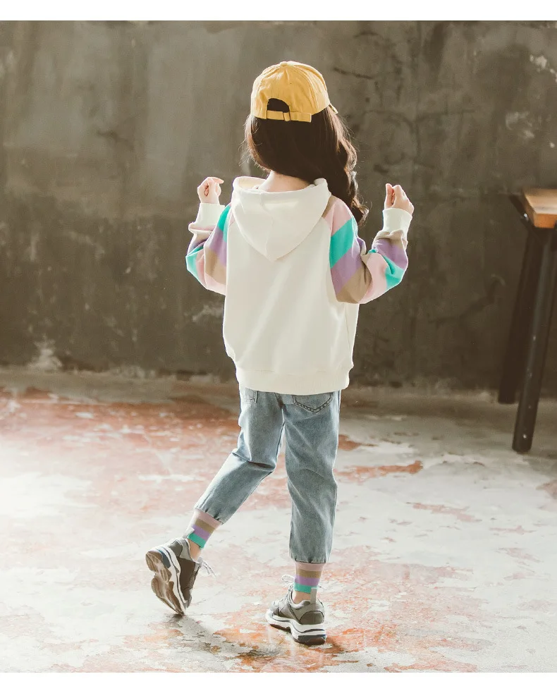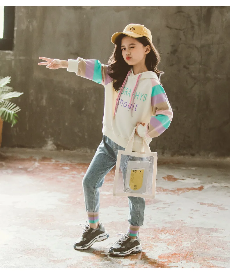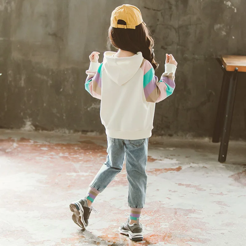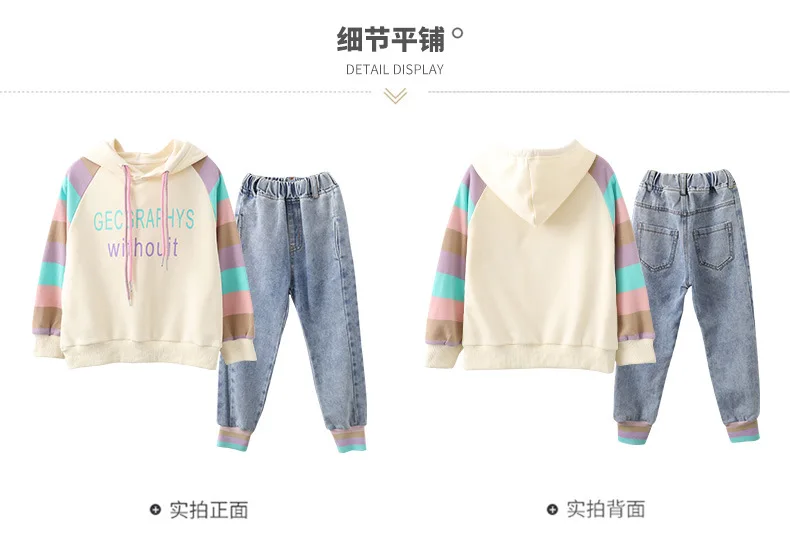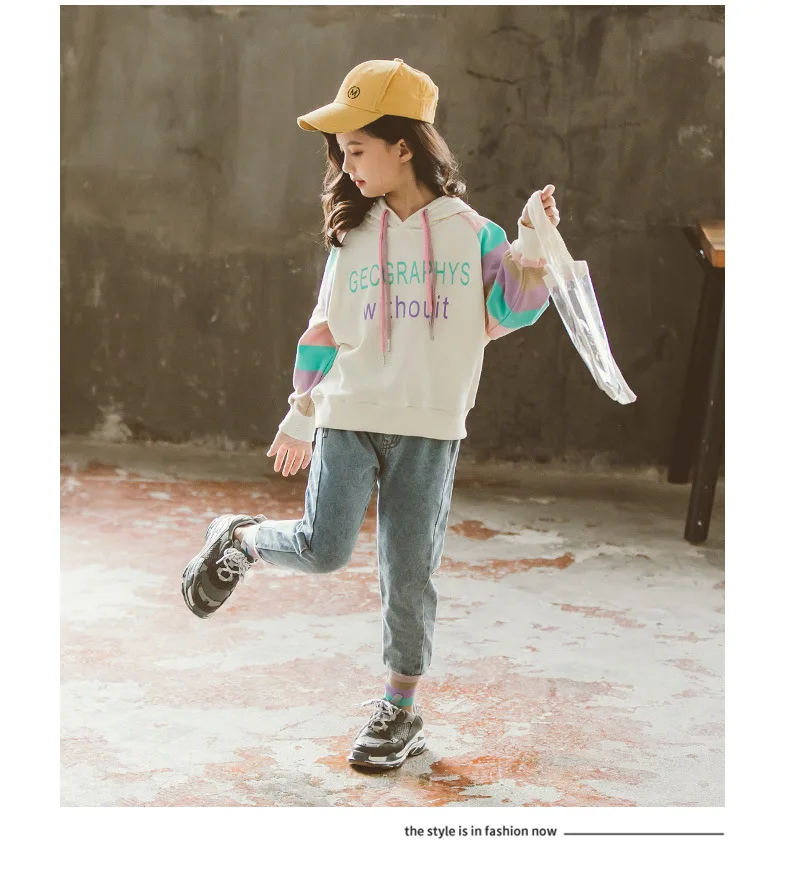 Костюм для девочек, толстовки с капюшоном, джинсы, комплект одежды для детей 8, 10, 12 лет, весенне-осенняя свободная повседневная одежда из 2 предметов для девочек-подростков