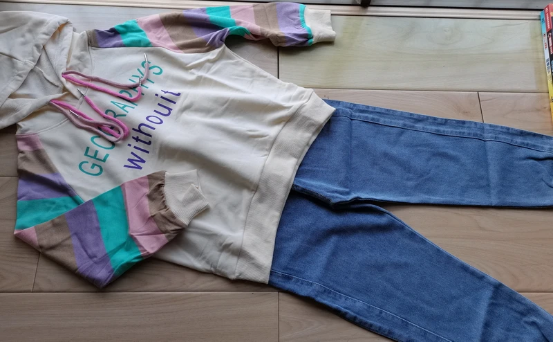 1. Ткань: Высококачественная хлопковая смесь, мягкая, удобная и дышащая, приятная на ощупь для ваших детей. 2. Характеристики: комплект одежды из двух предметов: полосатые толстовки с капюшоном + джинсы; Ваш ребенок будет выглядеть мило и активнее. 3. Случаи: подходит для школы, повседневной носки, домашней одежды, прекрасный выбор в качестве праздничных нарядов, идеальный подарок, это любимая одежда для девочек.