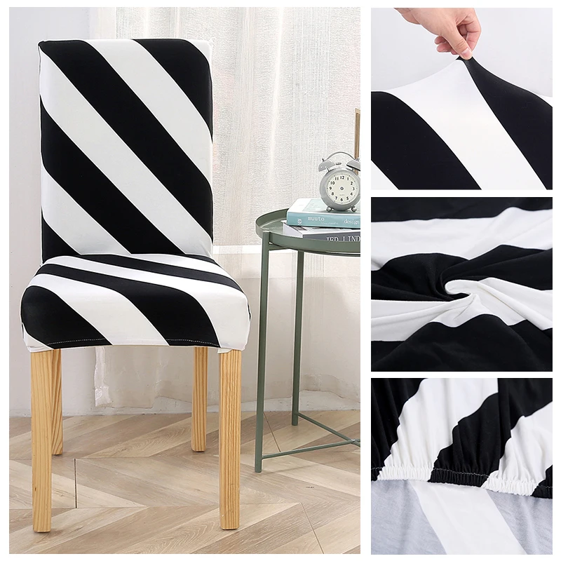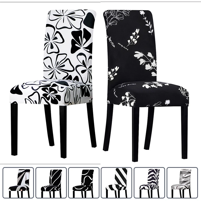 Черно-белый чехол для стула с цветочным принтом, универсальный размер, моющиеся большие гибкие Чехлы для обеденных сидений