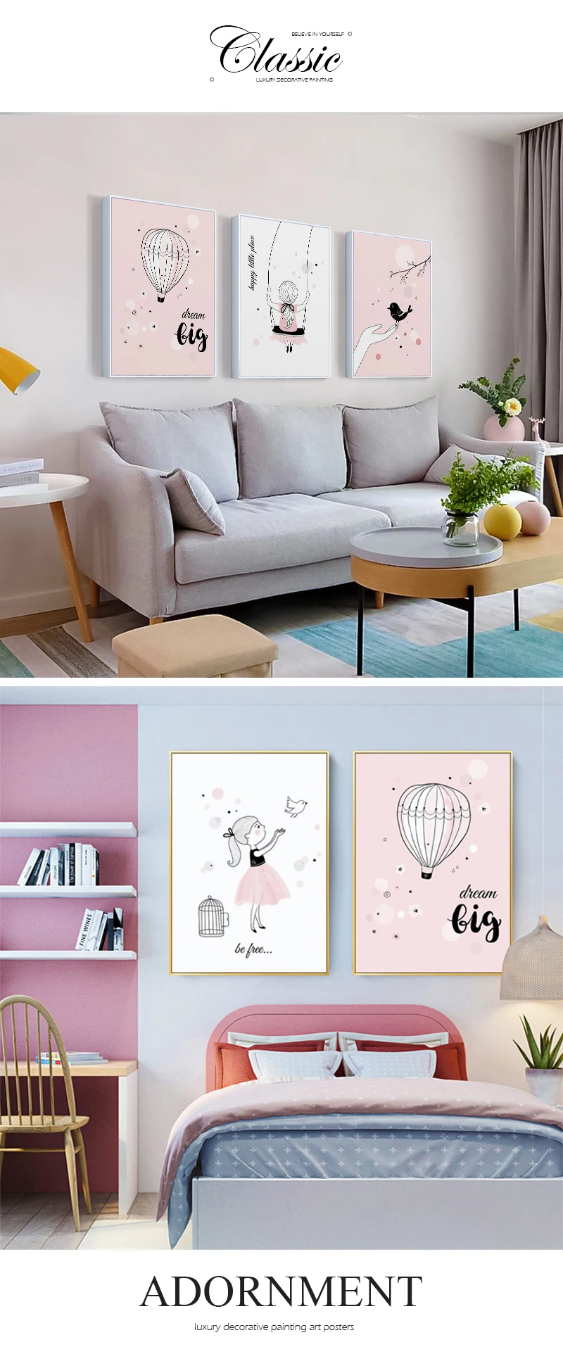 Модный розовый декоративный постер для комнаты для девушек, искусст...