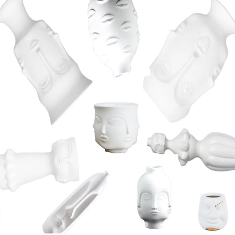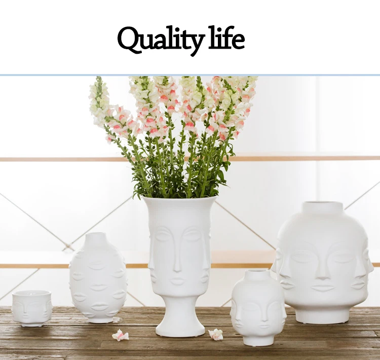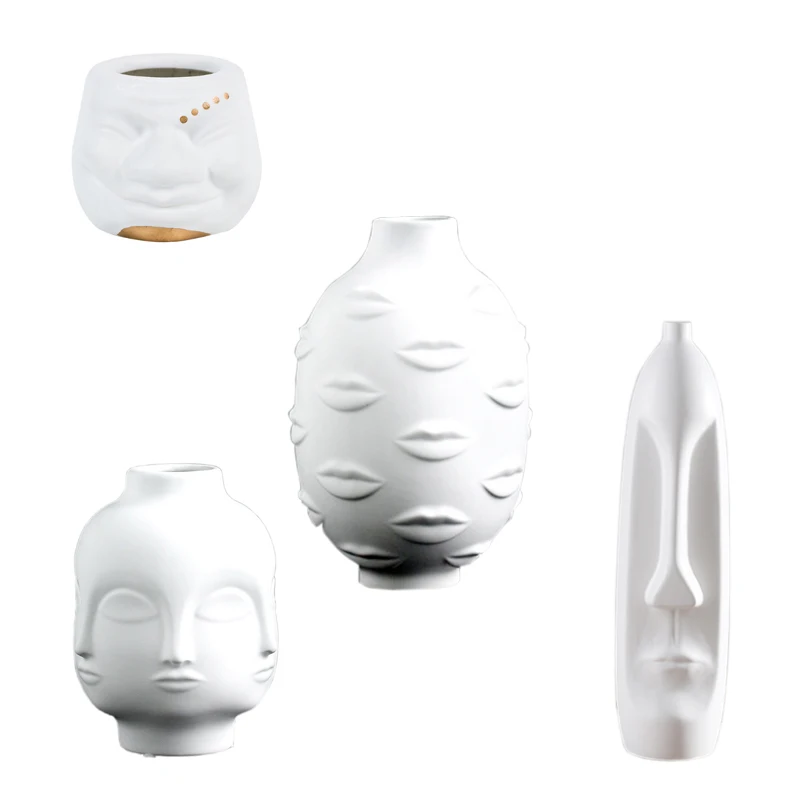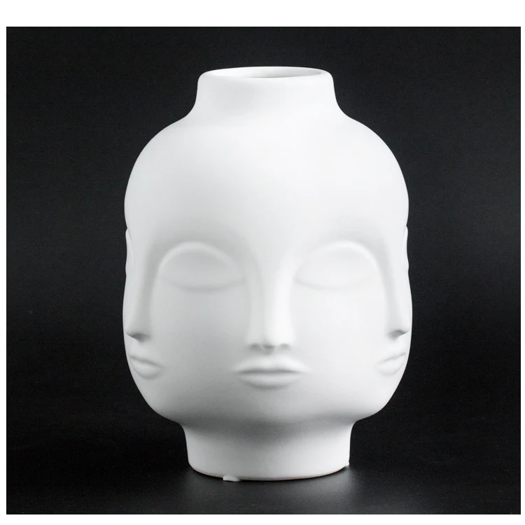 Леди лицо голова кашпо Цветочная композиция для вазы Ваза с цветами горшок для суккулентов Сад орнамент белый матовый керамический ремесло