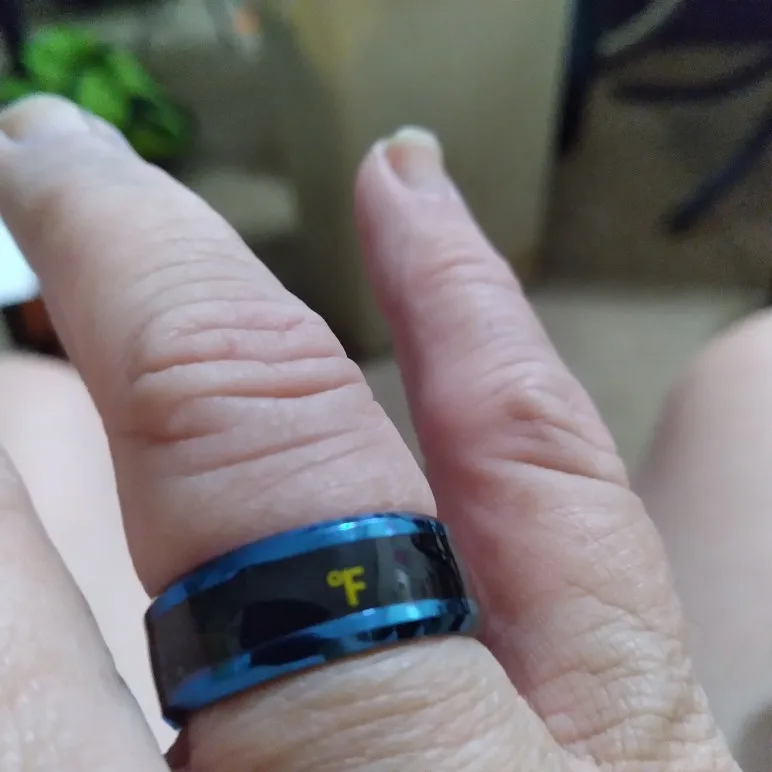 Заказал два кольца. Оказались на 1 размер больше. Надо бы указывать и диаметр в мм. На одном кольце небольшие раковины. Показания температуры, конечно, приблизительные, тусклые и на противоположной стороне от значка С°. Сразу и не увидел. Дешёвый сувенир, игрушка, баловство. Заслуживает "спасибо".