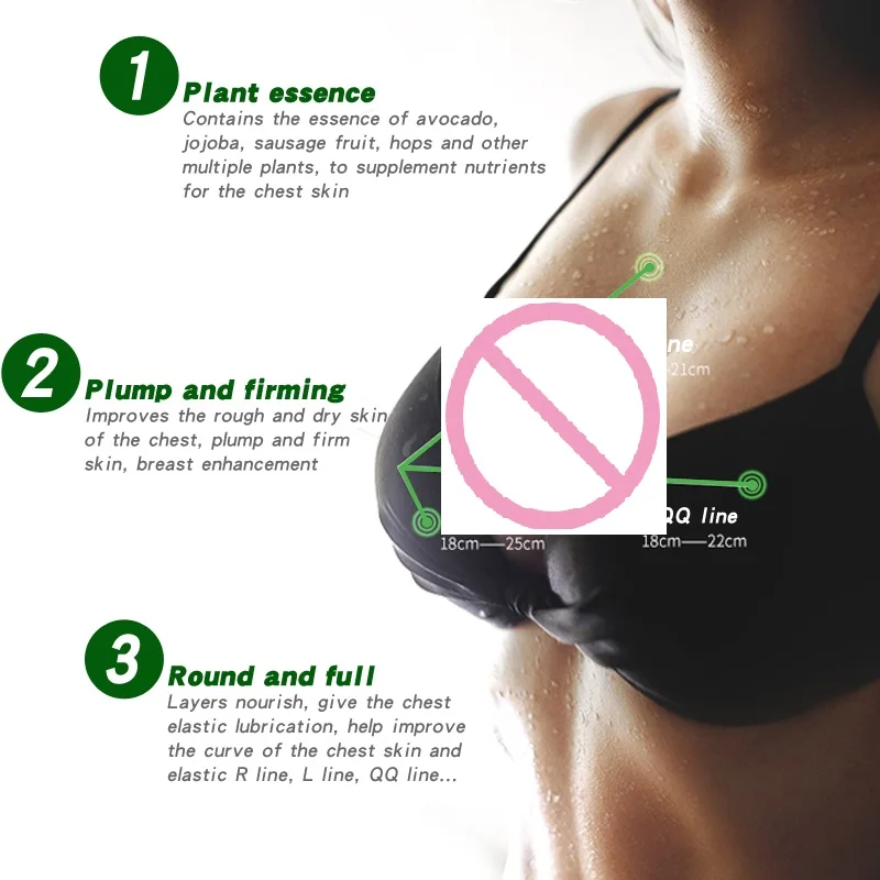 Содержит эссенцию авокадо, жожоба, колбасных фруктов, хмеля и других множества растений, чтобы добавить питательные вещества для кожи груди, слои питания, придать груди эластичность и смазку.