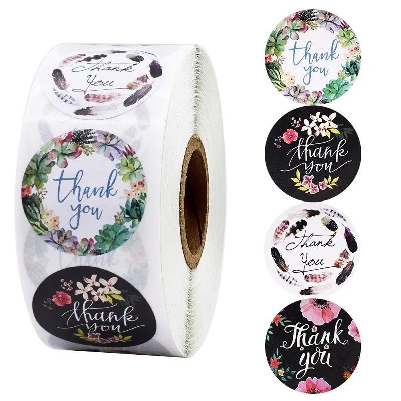 Красивые новые стили 500 шт Круглые Цветочные Спасибо наклейки печать этикетка для свадьбы пользу вечерние конверт ручной работы стикер для канцелярских товаров