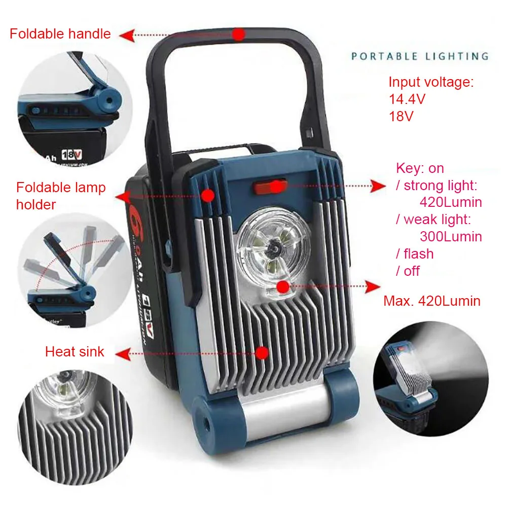 Светодиодный светильник онарь на литиевой батарее, фонари могут питаться от литий-ионной батареи Maikita Dewalt Bosch Milwaukee M18 18 в