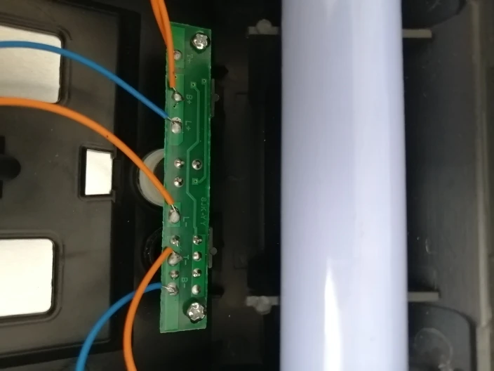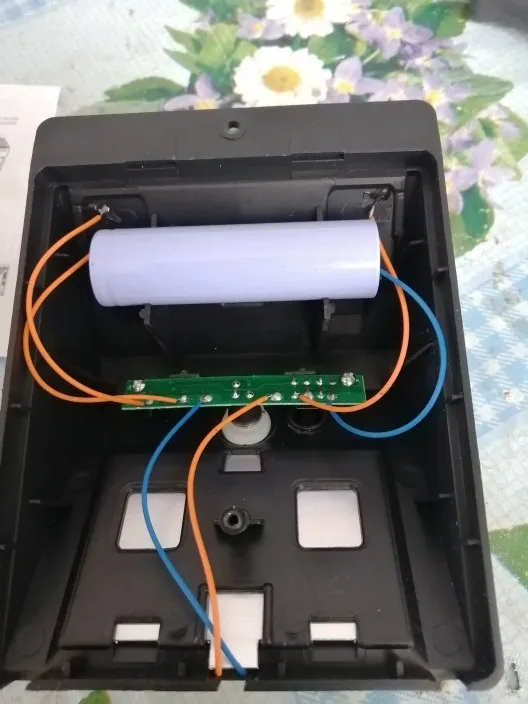 Отломан угол на задней крышке с плюсовым контактом, склеел 502, установил аккум. работает.Доставка 3 месяца, светильник упакован в пупырку и плотно перемотан скотчем, по характеру повреждения предполагаю, что отправили уже со сломанной крышкой.Продавцу не респект.