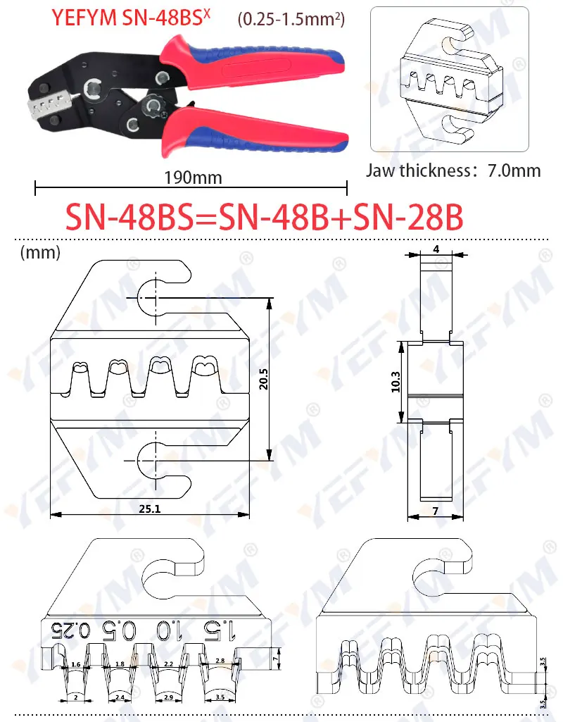 Обжимные плоскогубцы SN-48BSX, быстрая замена для 2,8, 4,8, 6,3, трубок, фотоэлектрических изолированных клемм