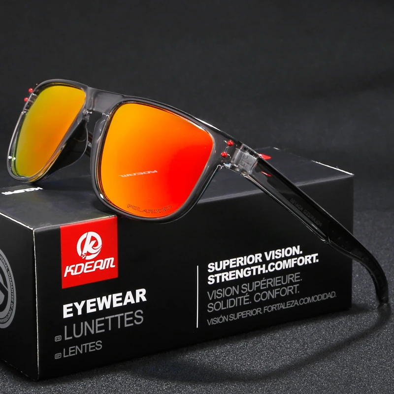 Мужские и женские зеркальные солнечные очки KDEAM, квадратные поляризационные солнцезащитные очки с бесплатной коробкой
