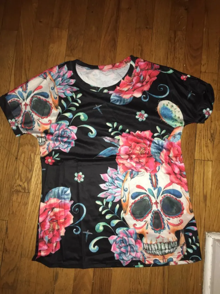 Женская футболка с 3D-принтом черепа # H40, футболка большого размера с коротким рукавом и круглым вырезом, Футболка Harajuku, женская футболка, Poleras