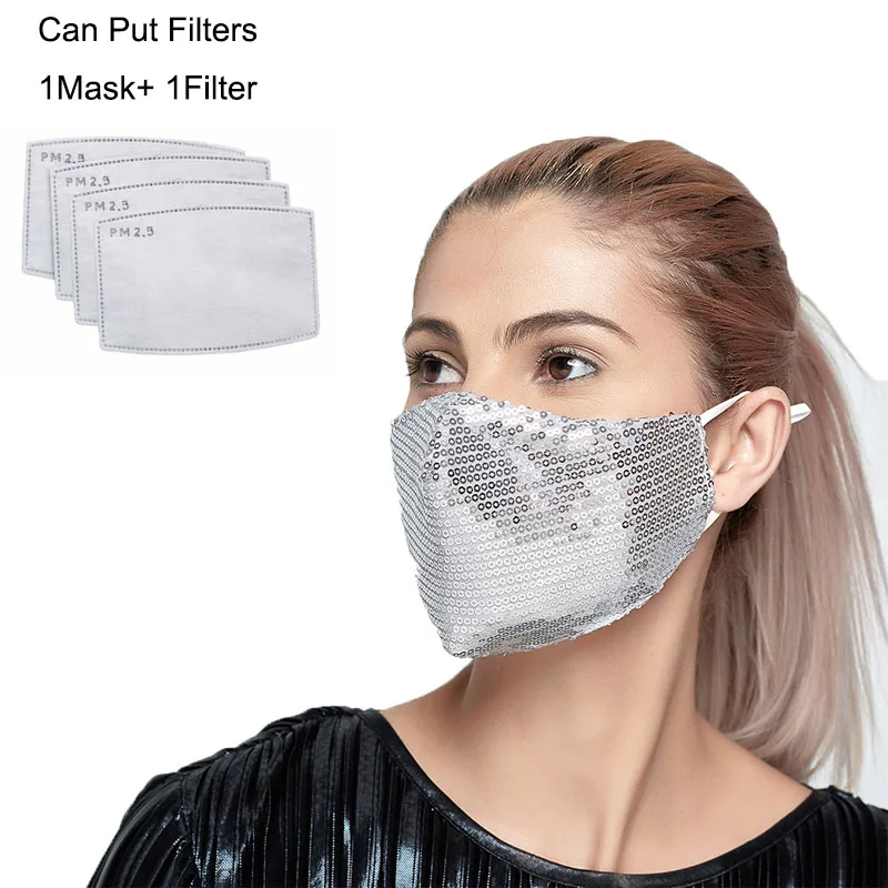 PM 2,5 Пылезащитная женская маска для рта, модная маска для лица с блестками, Пылезащитная маска с петлями для ушей со ртом для лица, респиратор