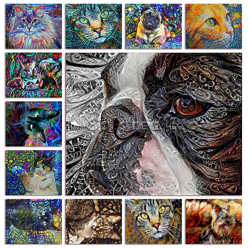 Алмазная 5D картина сделай сам, вышивка крестиком с изображением животных, собаки, кошки, красочная вышивка с котенком, мозаика из страз, щенок, фантазия, домашний декор