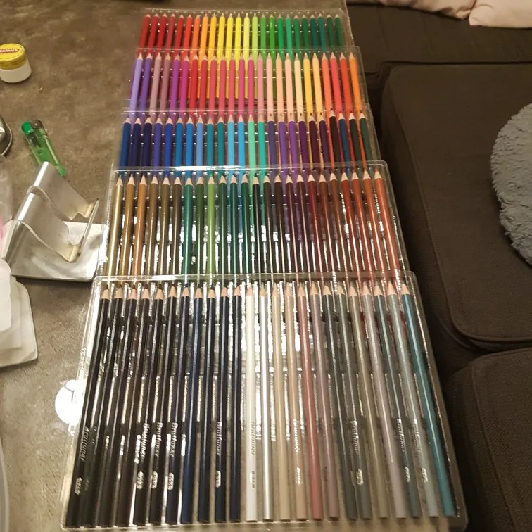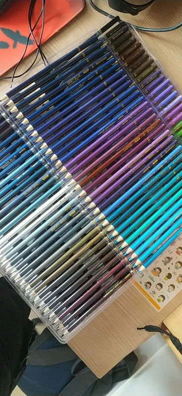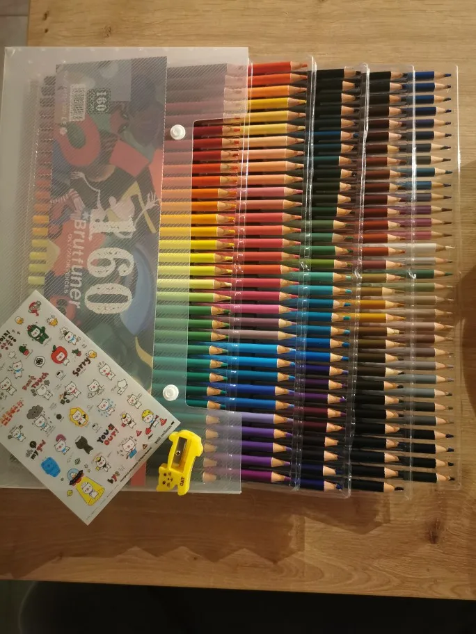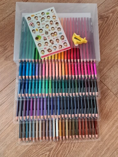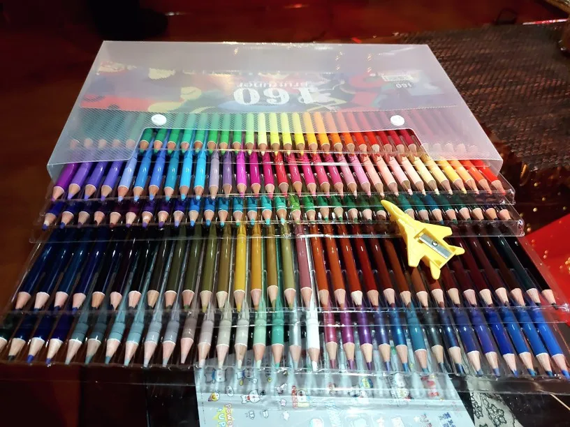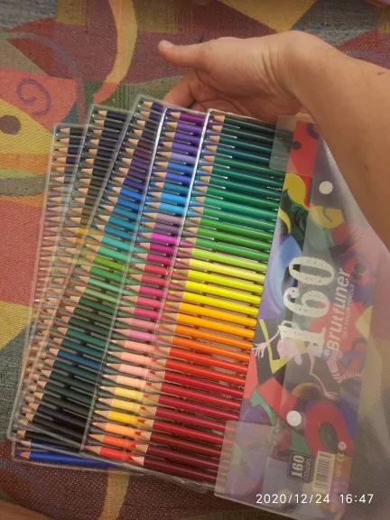 Шикарный набор! 160 цветов в удобной упаковке. Качество на высоком уровне. Покупал сыну в подарок на новый год и попросил получше завернуть посылку, дабы не потерялся товарный вид упаковки. Продавец тщательно и аккуратно упаковал в 2 метра пупырки! За что отдельное человеческое спасибо. В виде подарочка добавили наклеечки и меленькую точилку в виде гитарки. Мне, как гитаристу, приятен этот момент. Рекомендую и карандаши и продавца. Смело берите, - не пожалеете!