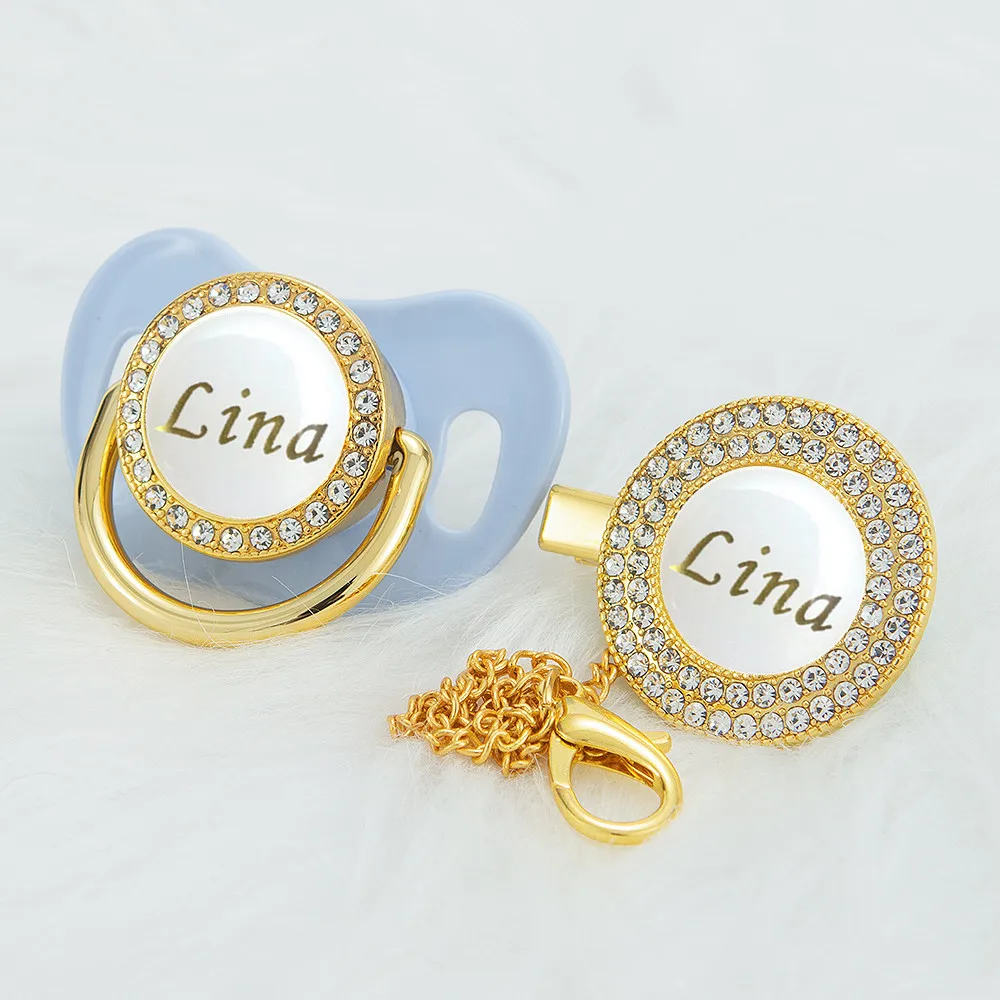 Индивидуальное название MIYOCAR, золотистая, белая, блестящая Соска-пустышка и зажим для соски, без БФА, пустышка с уникальным дизайном PWG