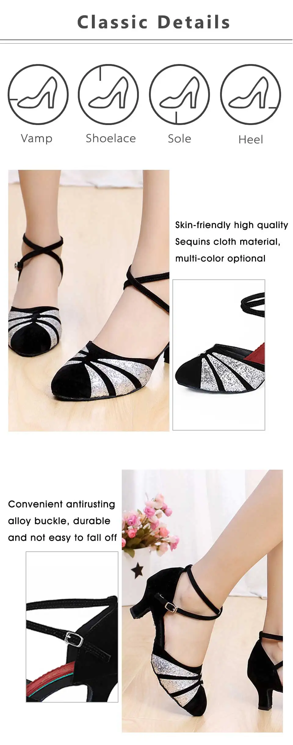 Туфли для латиноамериканских танцев, с закрытым носком и блестками