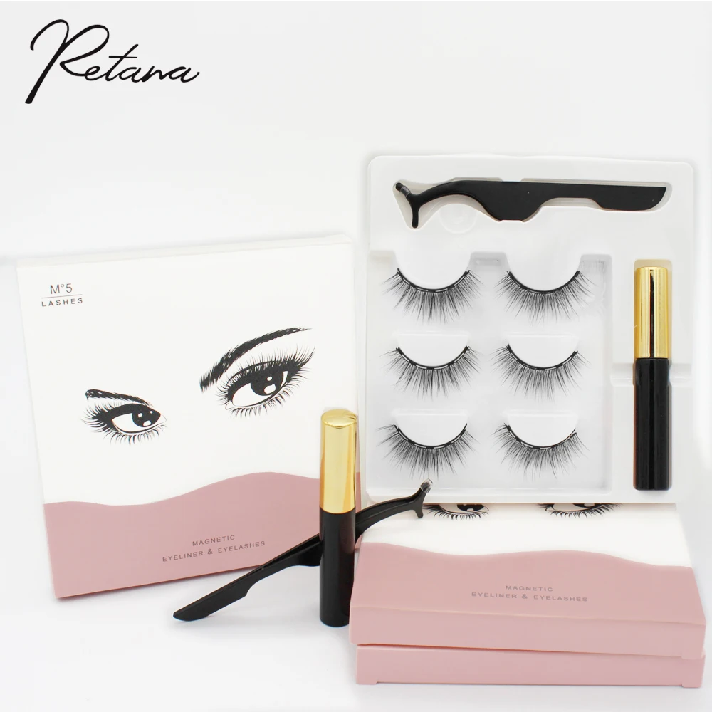 3D Магнитные натуральные накладные ресницы ручной работы и магнитная подводка для глаз Водонепроницаемый Профессиональный набор инструментов для макияжа