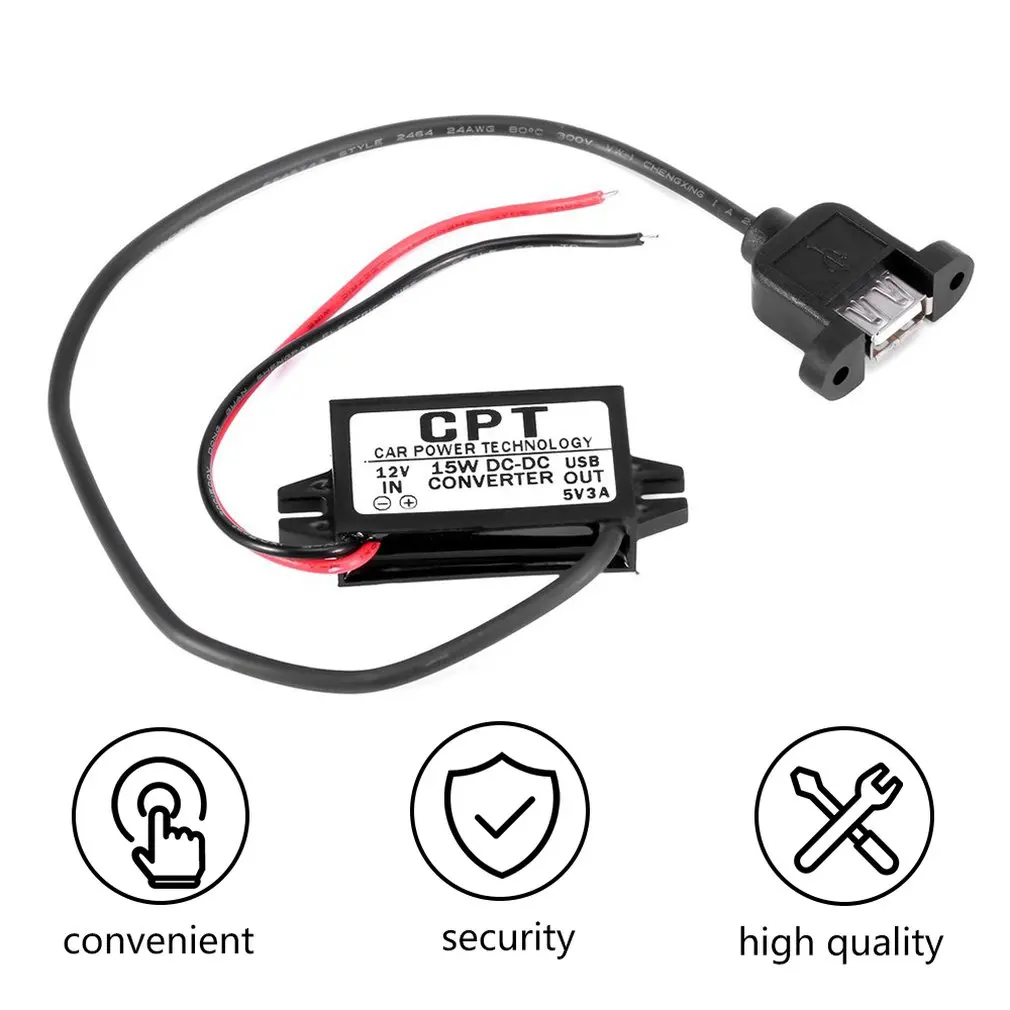 Новинка, долговечное практичное автомобильное зарядное устройство, модуль преобразователя постоянного тока от 12 В до 5 В, 3 А, 15 Вт, USB-адаптер выходной мощности с монтажным отверстием USB, Лидер продаж