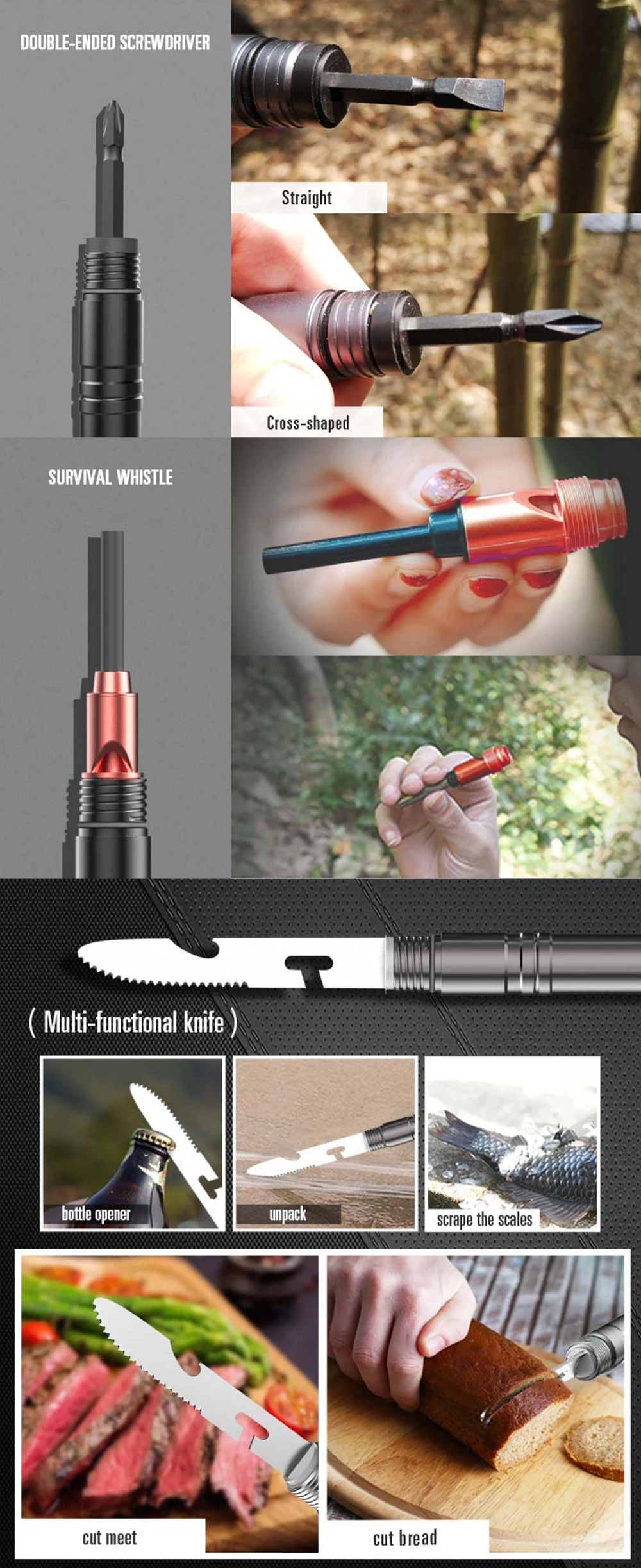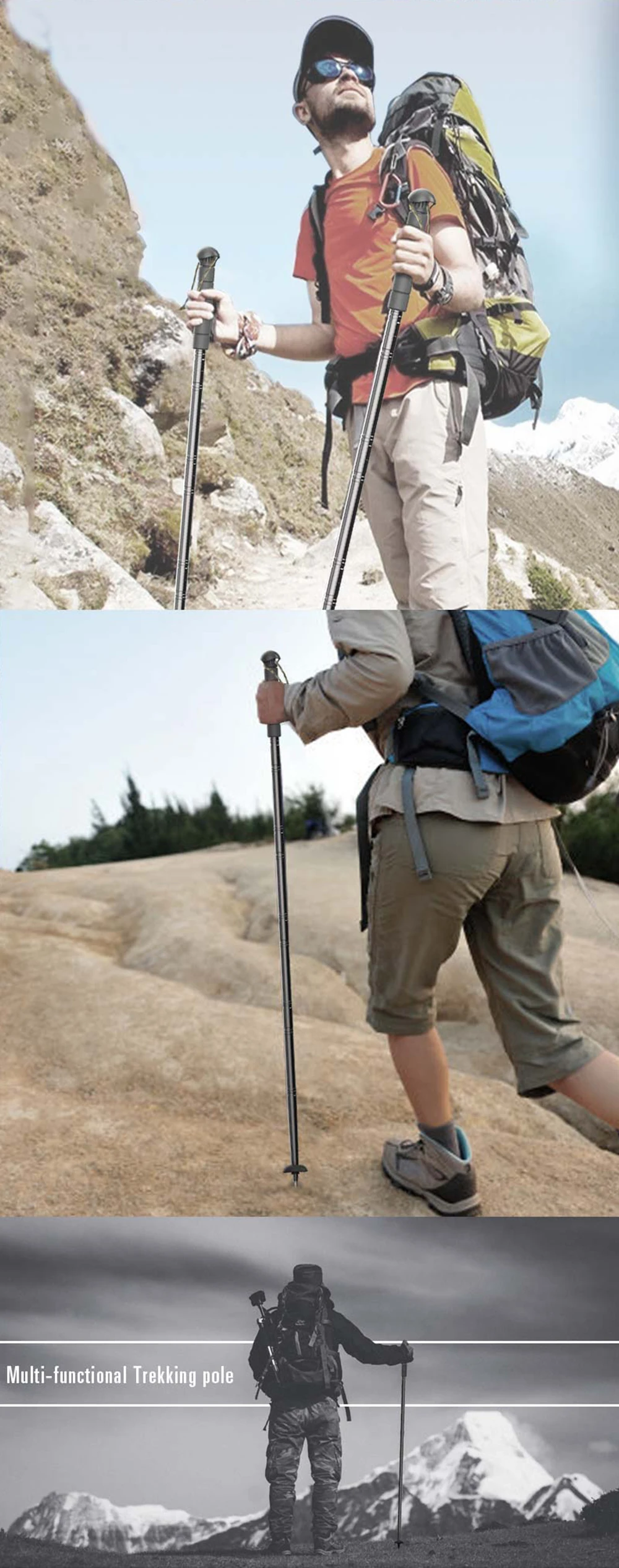 Многофункциональные треккинговые палки на открытом воздухе снаряжение Выживание походные палки ультралегкие 6063 сплав тактическая прогулочная шест палка для селфи