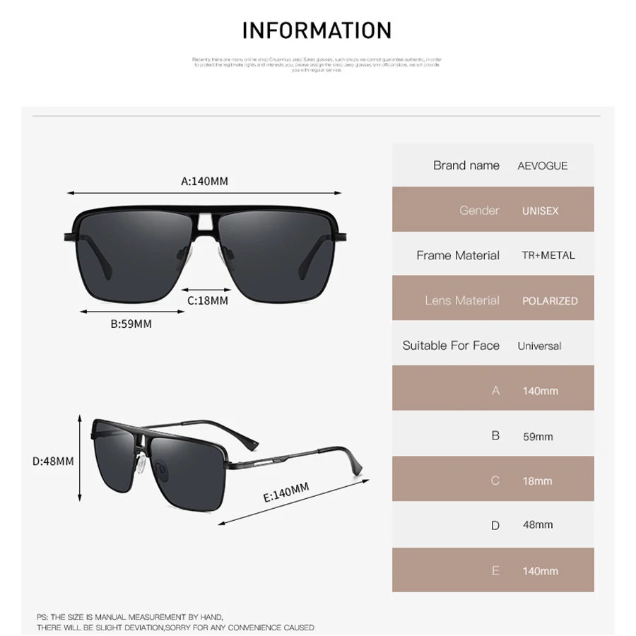 Солнцезащитные очки AEVOGUE AE0869 для мужчин и женщин, квадратные ...