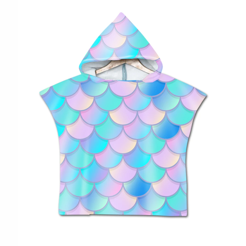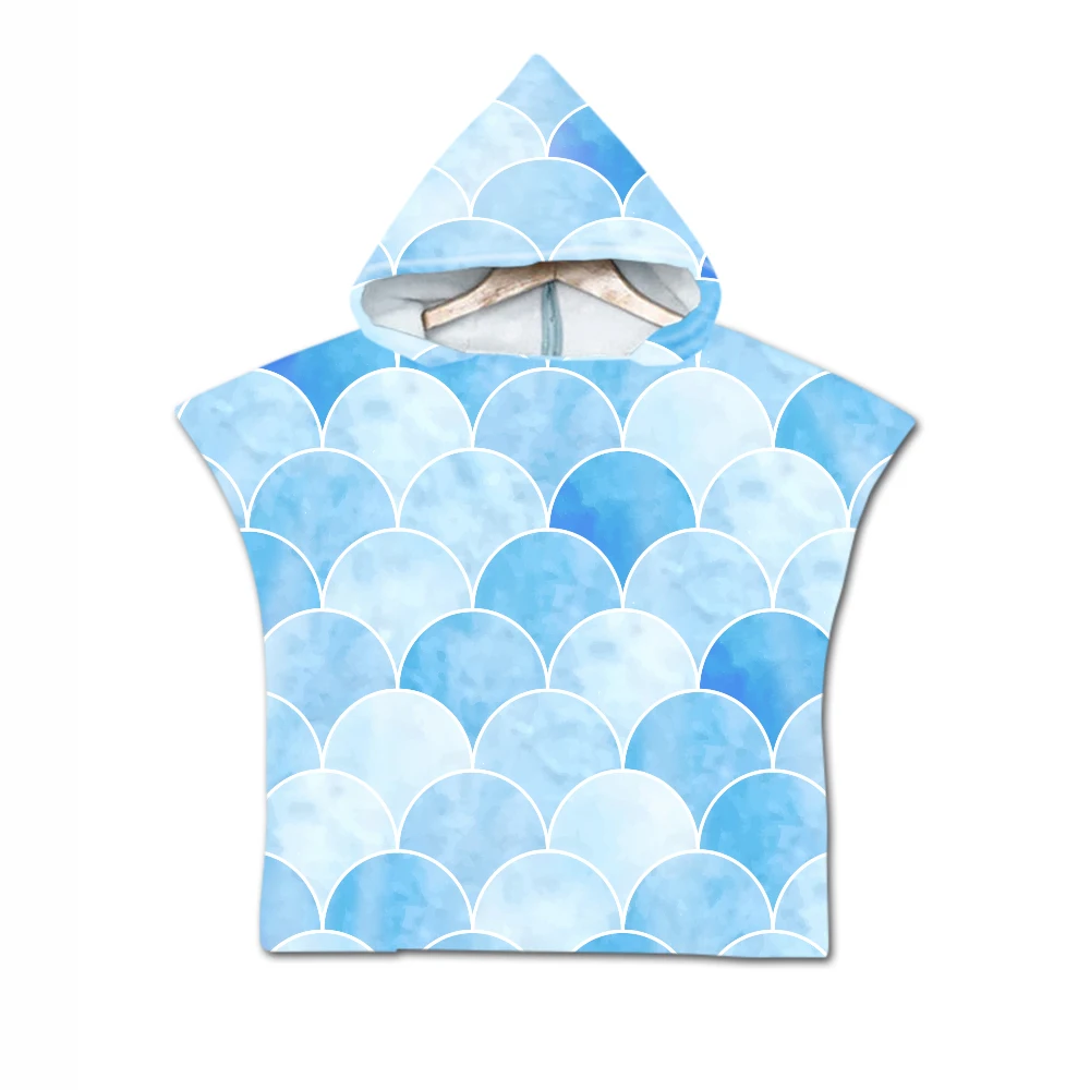 Бесплатная доставка, полотенце с геометрическим рисунком в виде рыбьей чешуи, детское полотенце с капюшоном, полотенце для бассейна, пляжного пончо, накидка, новинка, подарок на день рождения