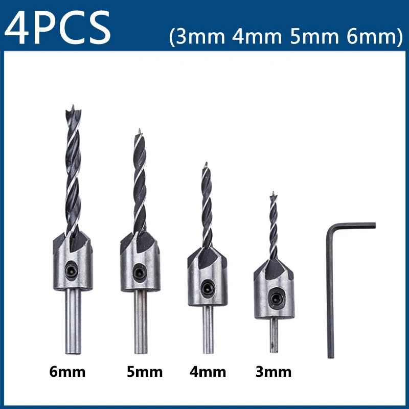 Сверла с потайной головкой, 3,4,5,6,7,8,10 мм, 4 шт.7 шт.