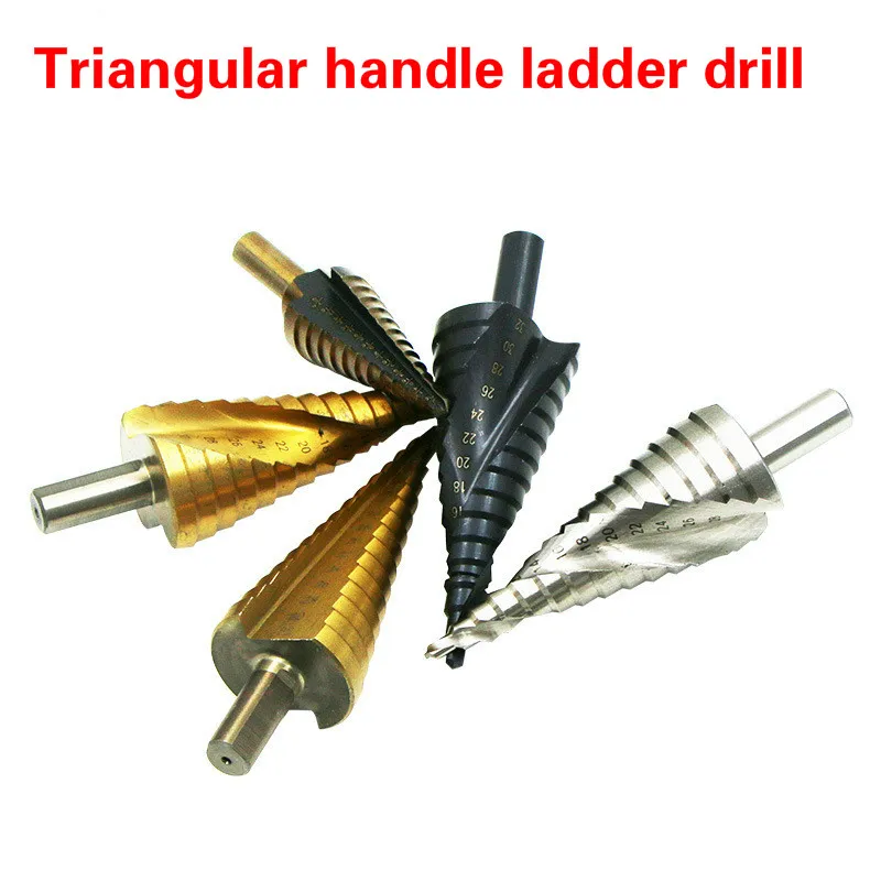 Быстрорежущее титановое ступенчатое сверло с тригональной ручкой 4-20 мм ступенчатый конусный режущий инструмент стальной деревообрабатывающий металлический сверлильный набор