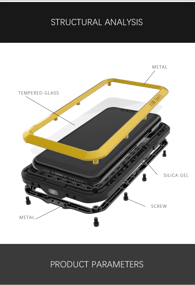 Посылка ция: Стандартная конфигурация LOVE MEI Shock/Dust/Life водонепроницаемый металлический чехол