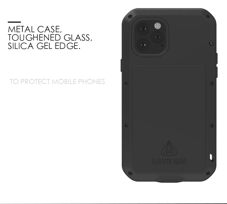 LOVEMEI Роскошные грязеотталкивающие противоударные металлические алюминиевые чехлы с Gorilla Glass для iPhone 11 Pro Max 6,5 "сверхпрочный защитный чехол