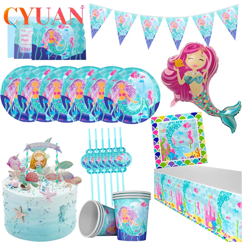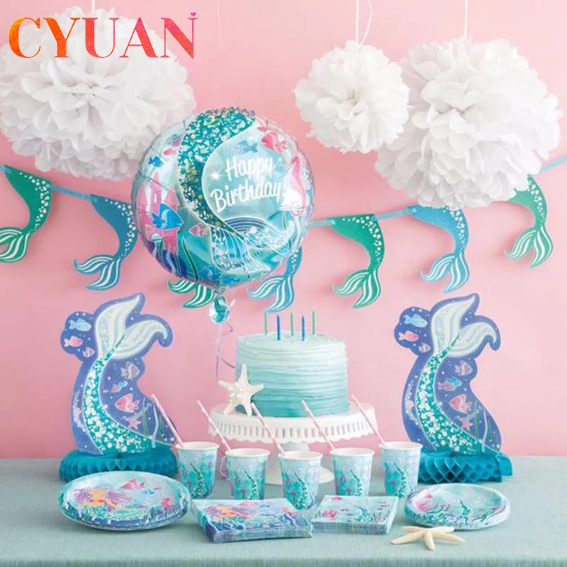 CYUAN, маленькая Русалочка, праздвечерние чные принадлежности, воздушный шар Русалочки, декор-баннер, Русалочка, праздничные подарки на день рождения, украшения для вечеринок для детей