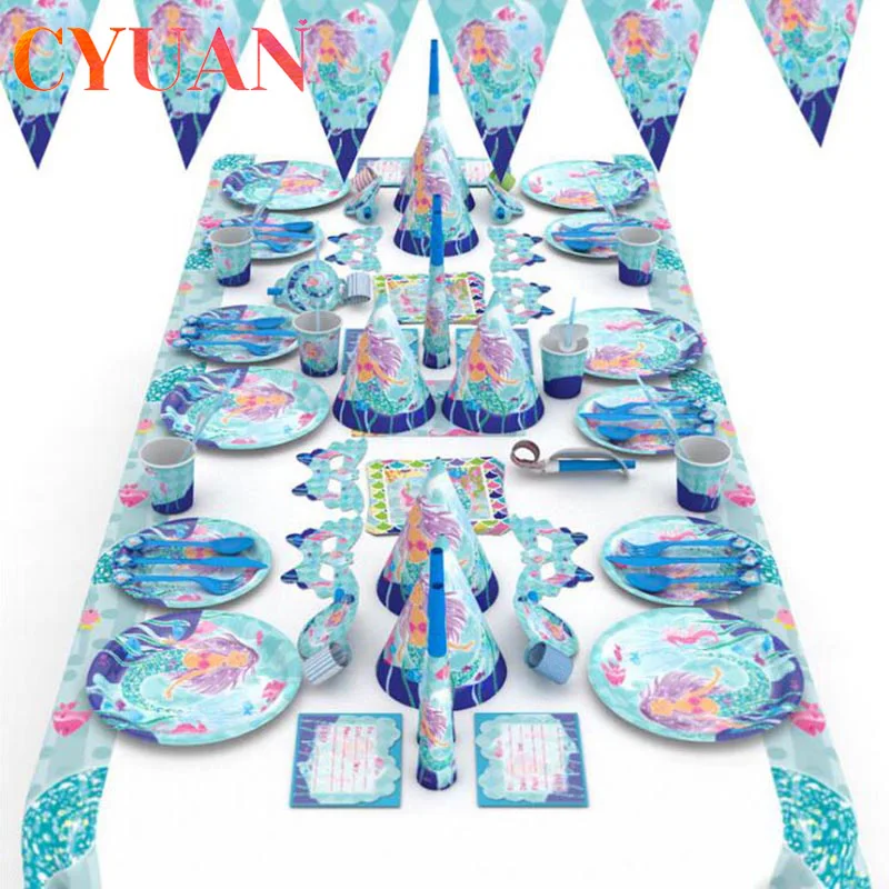 Одноразовый набор столовых приборов для маленькой русалки, вечерние...