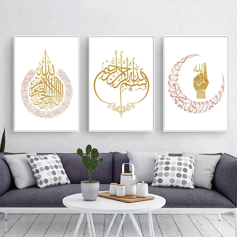 Золотые художественные настенные постеры на холсте с мусульманскими...