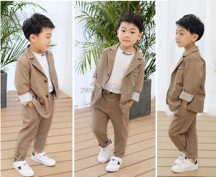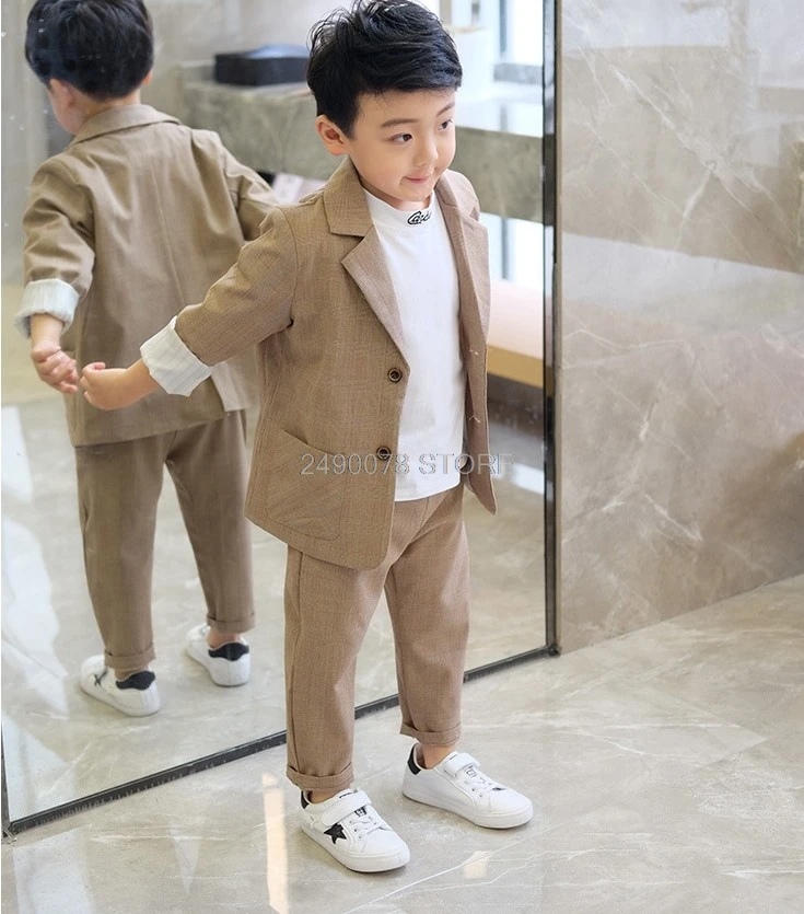 В 2021 году, детский костюм из 2 предметов: куртка для свадьбы и штаны цветочный смокинг для мальчиков, Школьный костюм для выступлений