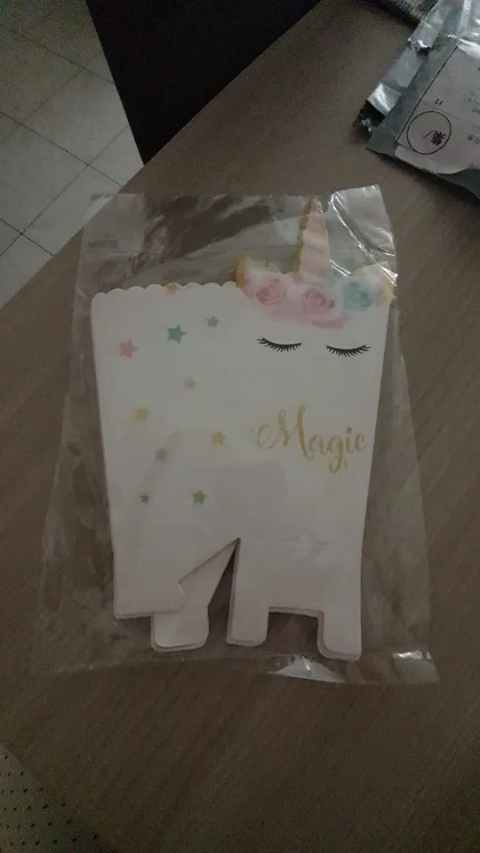 Товары для вечевечерние с единорогом, бумажная коробка для попкорна, Подарочная коробка, конфеты пакеты для печенья, единорог, вечеринка, Детские сувениры, бумажные тарелки, наборы чашек