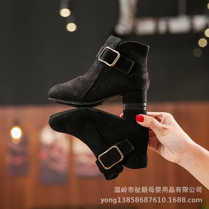 От 3 до 12 лет; Модные зимние ботинки для больших детей; Кожаные ботильоны для маленьких девочек; Цвет Черный; Новинка 2020 года; Детские ботинки принцессы на высоком каблуке