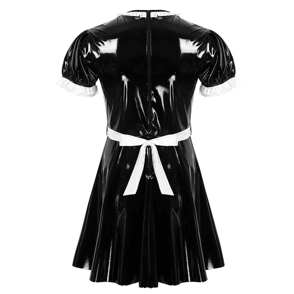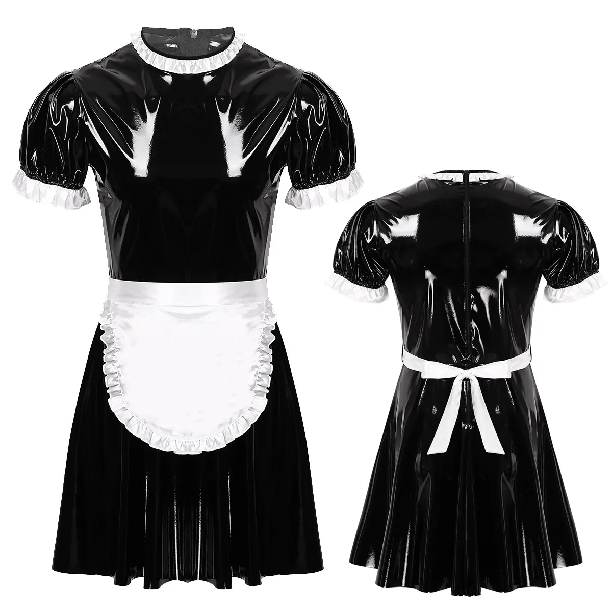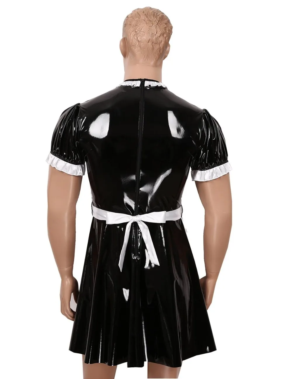 Особенности:Мужская одежда для косплея, костюм горничной, костюм с фартуком, скрытая молния сзади.Гофрированное платье с круглым вырезом и короткими рукавами-фонариками, длиной выше колена, со съемным белым атласным галстуком-фартуком на талии.Изготовлен из высококачественной лакированной кожи, мягкий и удобный в носке, гладкий на ощупь, сделает вас соблазнительной и соблазнительной.Идеально подходит для клубной одежды, ролевых игр, костюмированной вечеринки, карнавала, тематической вечеринки и Хэллоуина.Пожалуйста, внимательно проверьте таблицу размеров перед покупкой, рекомендуется ручная стирка.