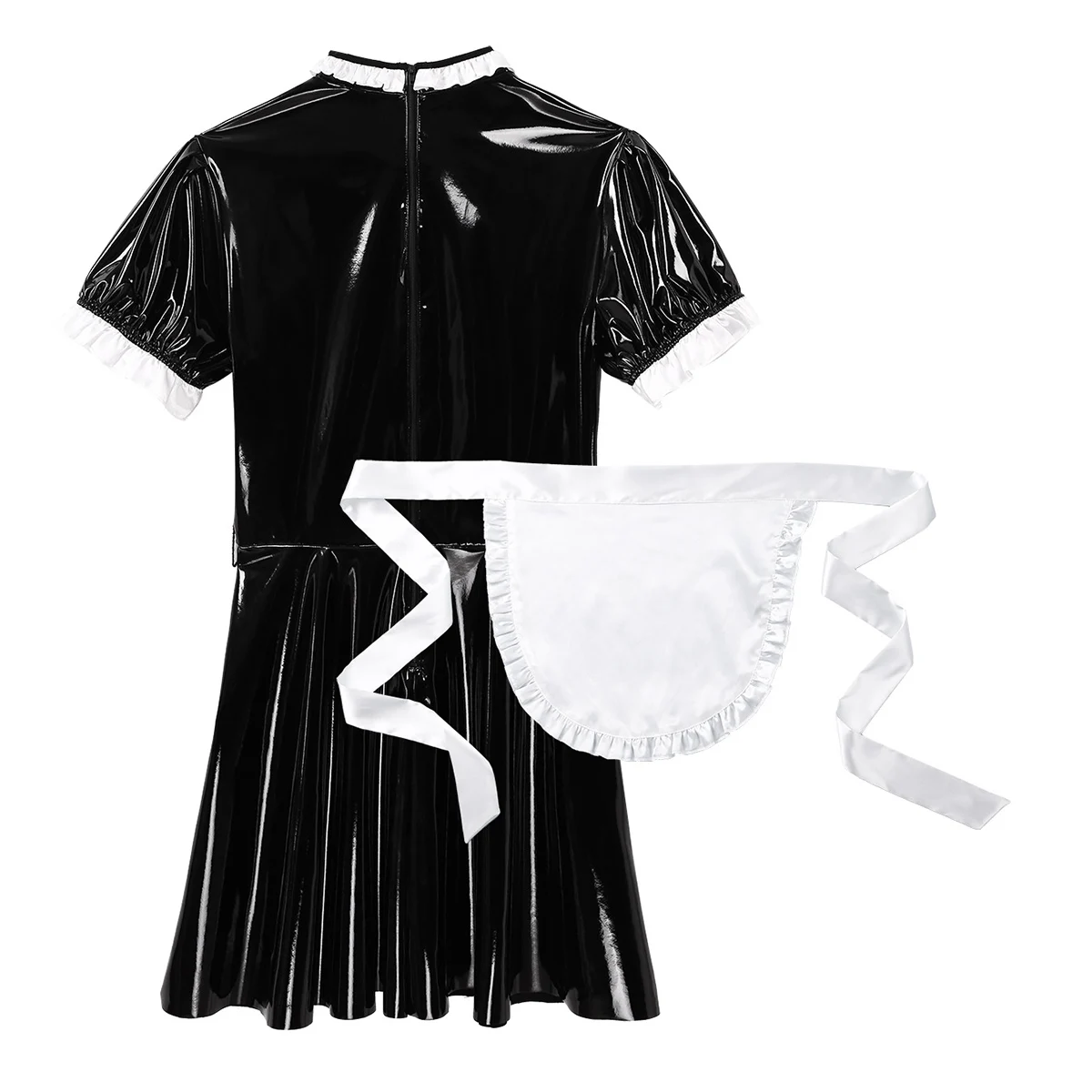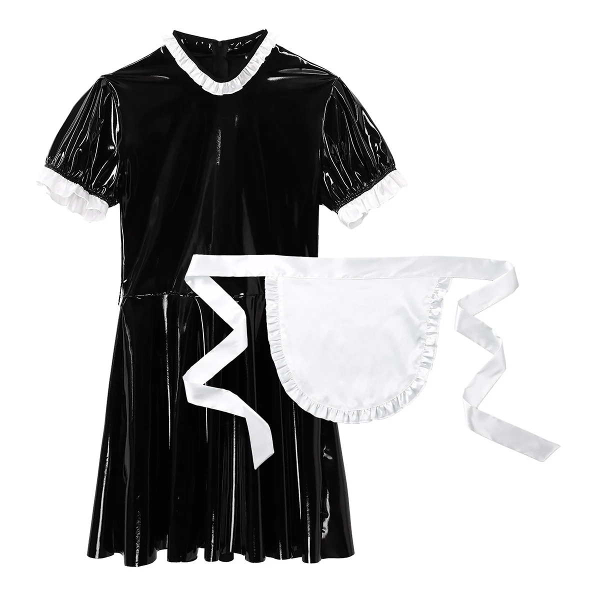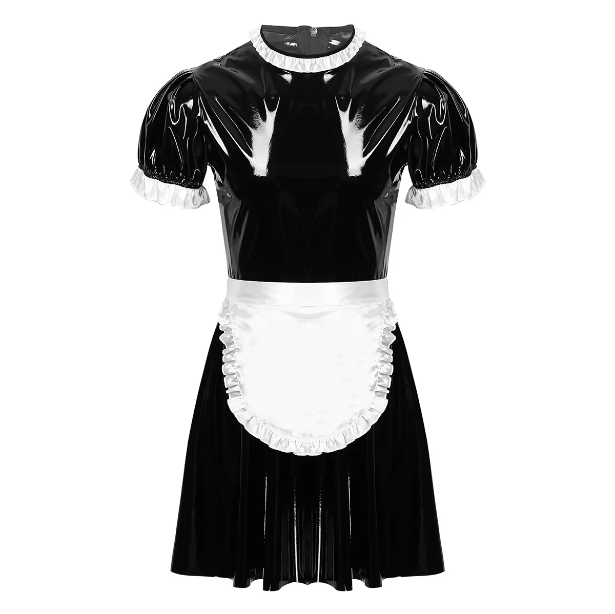 Особенности:Мужская одежда для косплея, костюм горничной, костюм с фартуком, скрытая молния сзади.Гофрированное платье с круглым вырезом и короткими рукавами-фонариками, длиной выше колена, со съемным белым атласным галстуком-фартуком на талии.Изготовлен из высококачественной лакированной кожи, мягкий и удобный в носке, гладкий на ощупь, сделает вас соблазнительной и соблазнительной.Идеально подходит для клубной одежды, ролевых игр, костюмированной вечеринки, карнавала, тематической вечеринки и Хэллоуина.Пожалуйста, внимательно проверьте таблицу размеров перед покупкой, рекомендуется ручная стирка.