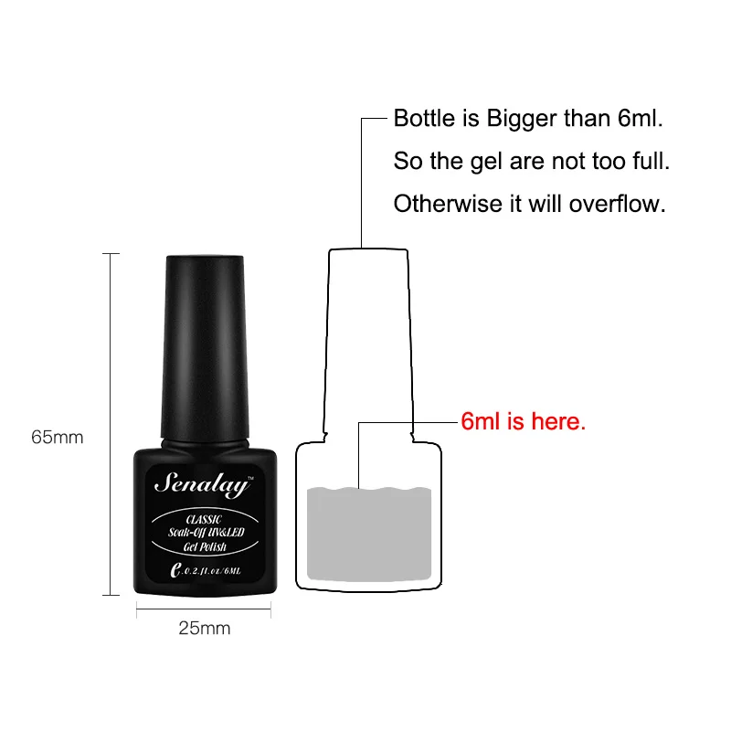 Характеристики Товара:Бренд: SENALAYНазвание: Набор гелей для ногтей с замачиваниемОбъем: 6 млЦвет: 58 цветов sОтверждение: УФ/Светодиодная лампаМы уверены, что наш Гель-лак лучшего качества на Aliexpress.-Качество-наш первый приоритет.Светильник почти без запаха (средний запах имеет только верхнее покрытие и основа), мы применяем только органическую текстуру для защиты вашего здоровья.-Цвет будет держать блеск до 30 дней.-Горячие цвета на выбор, подходят для любого повода.Шаг за шагом:-1. Придайте ногтю форму. Слегка отполируйте поверхность ногтевой пластины. Средство.-2. Нанесите базовый слой основы от кутикулы до свободного края (не забудьте закрыть край ногтя). Высушите ногти под светильник кой в течение 10 секунд или под УФ-светом в течение 2 минут.-3. Нанесите тонкий слой гель-лака выбранного цвета. Свободный край крышки. Выдержка: 30 секунд светодиодный Ной лампе или 2 минуты в УФ-лампе.-4. Нанесите 2-й тонкий слой гель-лака на ногти. Подержите под светодиодной лампой в течение 30 секунд или под УФ-светом в течение 2 минут.-5. Нанесите верхнее покрытие. Свободный край крышки. Выдержка: 30 секунд в светодиодный Ной лампе.-6. Удалите липкие остатки на ногтях с помощью очищающего средства. Затем нанесите питательное масло для кутикулы, чтобы увлажнить кутикулу и кожу вокруг ногтя.Для удаления:-1. Замочите ногти в жидкости для снятия акрила примерно на 5 минут.-2. Аккуратно разделите целый кусок эмали на каждый ноготь.Внимание:1. Объем 6 мл. Так как емкость флакона больше 6 мл, гель для ногтей не будет полностью заполняться флаконом!2. Плотно закрывается. Хранить вдали от солнечного света. Хранить в недоступном для детей месте.